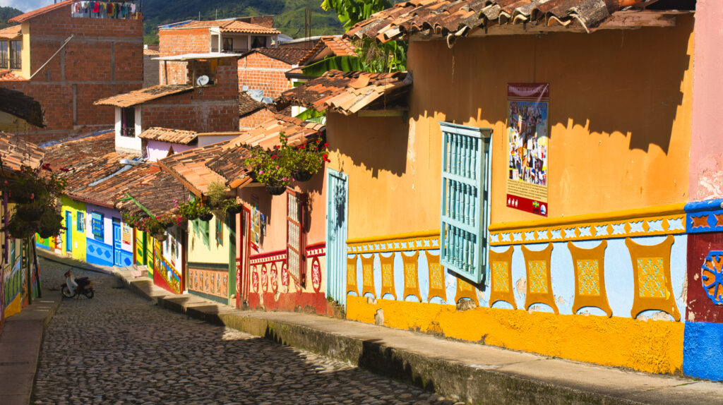 次に、メデジンについて見ていきましょう。メデジンは、世界で最も革新的な街に選ばれたことでも知られています。また、メデジンから日帰りで訪れることができる小さな街、グアタぺもおすすめです。グアタぺは、カラフルで可愛い壁の装飾が特徴的な街で、街全体が観光地化しています。それぞれの施設に合わせたイラストが描かれており、街歩きも飽きません。