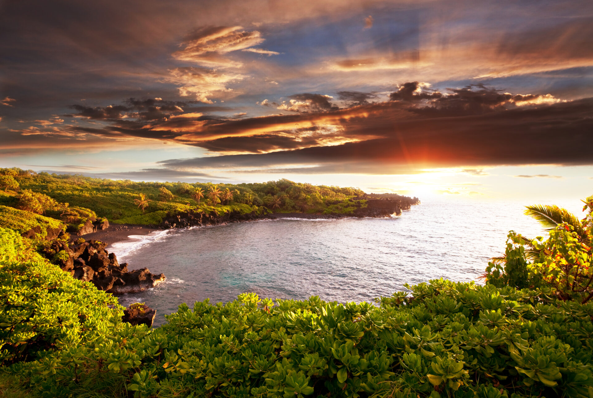 カアナパリ・ビーチは、マウイ島で最も人気のあるビーチの一つです。夕暮れ時にはトーチセレモニーが行われ、岩からの華麗な飛び込みが見られます。素晴らしい夕日とこのセレモニーは必見ですよ!