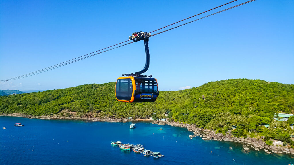 ベトナムのフーコック島にある「サンワールドホントムネイチャーパーク」は、自然とアドベンチャーが融合した楽園です。世界一のケーブルカーで有名なこのパークは、海上を飛ぶように移動しながら、壮大な自然景観を楽しむことができます。ケーブルカーから見下ろす透き通った海や緑豊かな島々の風景は、まさに絶景と言えるでしょう。