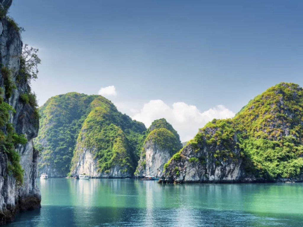 ハロン湾は1994年にユネスコの世界自然遺産に登録され、美しい景観と歴史的な価値が認められています。ベトナム北部のトンキン湾に位置し、約2,000もの奇岩が海に浮かぶ姿は圧巻です。観光客はクルーズでこの絶景を楽しむことができます。