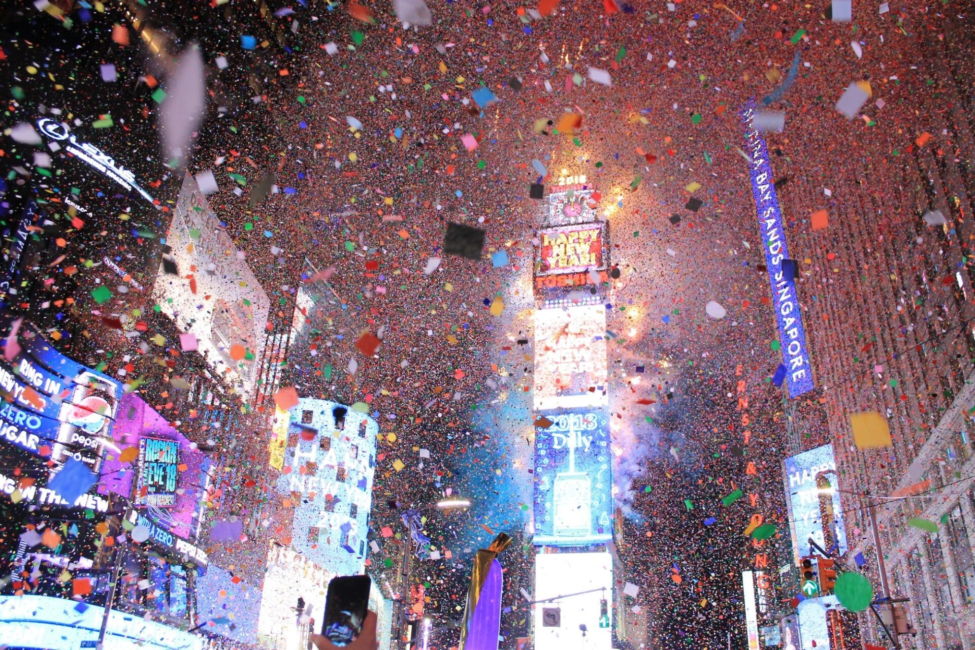 ニューヨーク市内で見られるニューイヤー花火