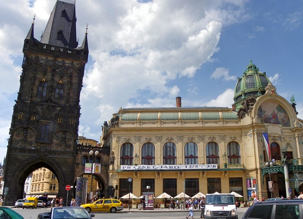 続いて、火薬塔の近くにある市民会館を訪れましょう。このアール・ヌーヴォー様式の建物は、プラハの文化と芸術の中心地として知られています。内部には美しい装飾が施されており、特にスメタナホールは音楽愛好家にとって必見のスポットです。