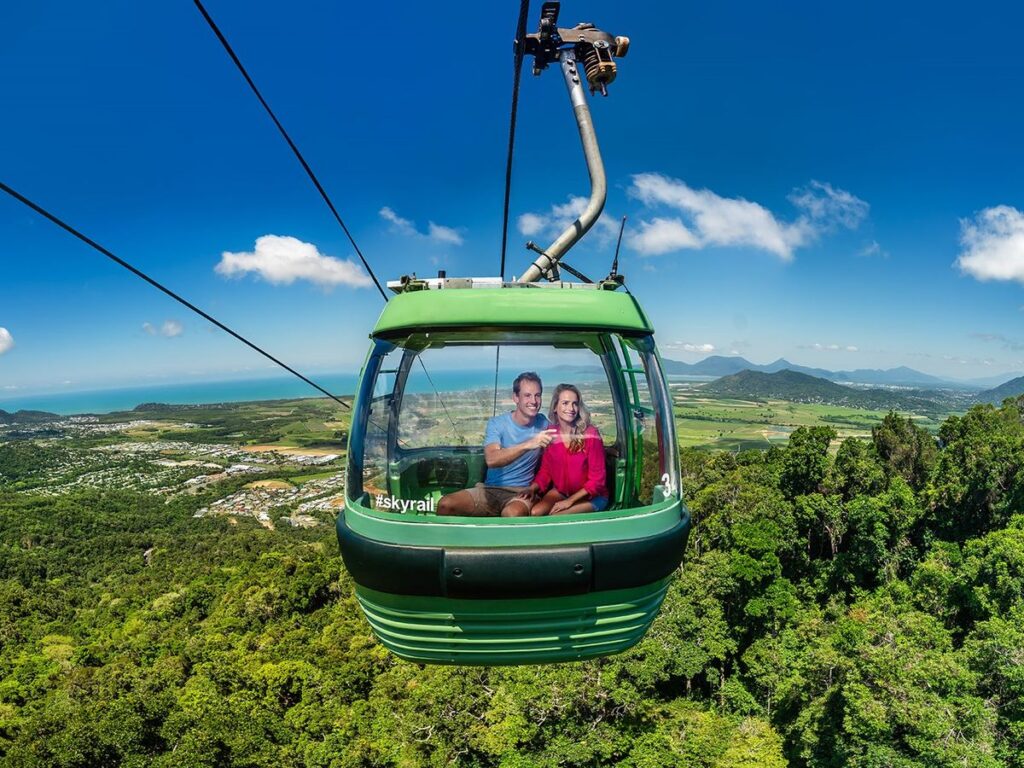 また、帰路の「スカイレール」では、一転して熱帯雨林を真上から見下ろす空中散歩が待っています。眼下に広がる濃い緑の絨毯と、遠くに輝くコーラルシー(珊瑚海)の絶景を楽しめます。