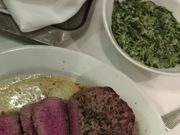 ルースズクリスは2回目の訪問でした。前回トマホークステーキをいただきましたが、今回私はフィレミニョン、夫はプチフィレとシュリンプを選択、サラダとスープ1つづつ、前菜はマッシュルームのクラブミート詰め、サイドがライス、クリームスピナッチ、マッシュポテトから選べたと思います。パンはサービスで付いていて、パンに塗るホイップバターが美味しかったです。 すべて美味しかったのですが、ステーキが柔らかくてジュー
