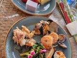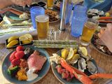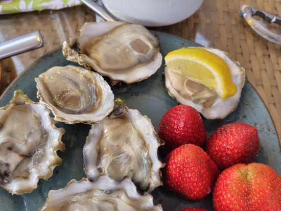 他の方の口コミを見て、あまり期待してなかったのもありましたが、生牡蠣もたくさん普通に食べられたし、目の前で切ってくれるプライムリブステーキも美味しかったです。何よりも、海外のイチゴは酸っぱいのが主流なのに、日本のイチゴの様に甘くて大満足でした。席もハワイらしく外の風を感じられる席で、チップ込みの値段にも安心感がありました。ただ4人で使用するテーブルが、小さかったのが残念でした。