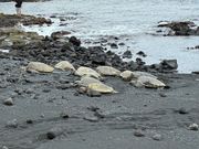 初めてのハワイ島、ハワイアンエアの国内線で行ってきました。 ホロホロツアーのガイドさんがコナに迎えにきていただき、日本語対応が素晴らしく、気持ち良かったです。 ハワイ島の名所の案内が軽妙でわかりやすくて、良かったです。 キラウェア火山の火口付近は溶岩の生々しい噴煙が見えて、もし噴火したらと、興奮しました。 黒砂海岸では海亀がなんと10匹もお出迎えしてくれました。海亀の眠そうな目が優しく、ほっとしま