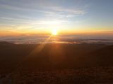 道中は、山に着いた途端に雨が降り出し、途中濃霧で周りが見えなくなるなど山頂まで行けるかヒヤヒヤしましたが、最後は雲の隙間から日の入りを見ることができました。