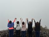 途中、オニヅカセンターで休憩し、高地に体を慣らしました。このとき霧が発生しており、山頂まで行けるかどうかはギリギリの状況でしたが、レンジャーが状況を確認し道を開けてくれたため、無事に頂上まで進むことができました。体調不良は特になかったものの、高山病対策として水分補給や軽食を心がけることが大切だと感じました。