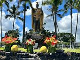 ヒロ観光、カメハメハ像と写真撮影、Big Island candiesに立ち寄り、キラウエア火山 volcano houseにて火山見学, 夕食にcafe 100のロコモコ、その後星空観測