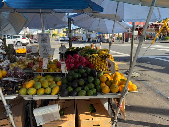 ハワイならではのフレッシュなトロピカルフルーツや野菜、新鮮な花々が並ぶファーマーズマーケット。