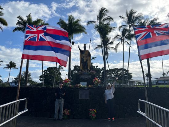 ハワイ諸島を初めて統一し王国を築いたカメハメハ大王の像を見学します。
