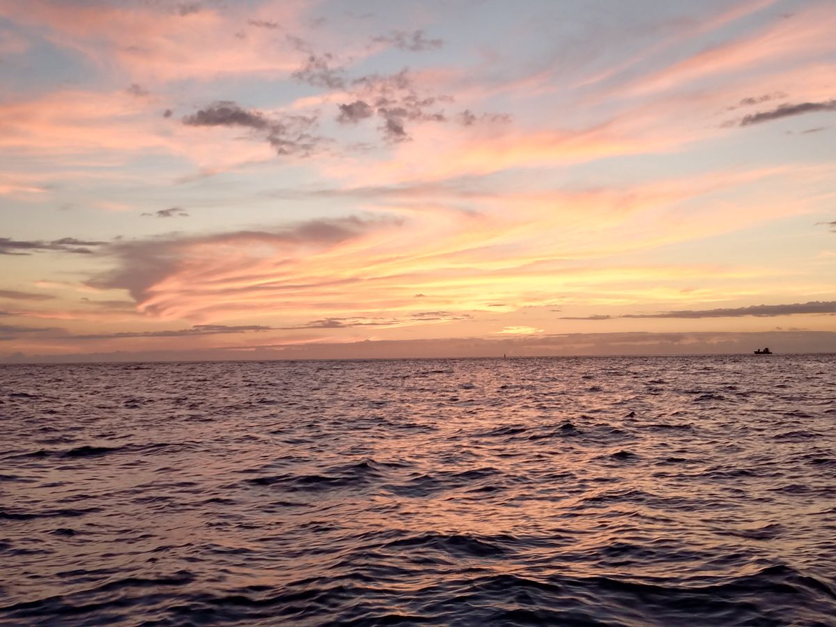 空港沖合で夕陽を見ながら、マンタが来るのを待ちます。