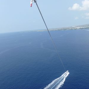 私の初めてのパラセーリングでした。母と一緒にハワイに来ましたが、母は高所と水が苦手なので、私は一人でした。ハワイでの初めての朝で、どこに行けばいいのかわかりませんでした。自分で見つけられなかったのでオフィスに電話したところ、出た女性が駐車場の案内をしてくれ、数ブロック離れた場所から歩いて行く方法を教えてくれました。必要な場所に行けるようにしてくれる素晴らしいサービスでした!ボードに乗り込むと、二人の男性がすぐに質問に答えてくれ、冷静な自信を持ってプロセスを説明してくれました。これ以上の体験はなかったと思います。この日働いてくれた皆さんに感謝します。初めての体験をストレスのかかる状況になりそうなところから、ポジティブなものにしてくれました。