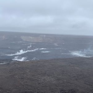 楽しみにしていたキラウエア火山見学、小雨模様でしたが、大きな火口を見ることができました。