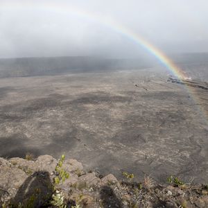 ヒロを自由に観光し、クッキーメーカーのビッグアイランドでお土産を買ったら、いよいよキラウエア火山に向かいます。キラウエア火山は「山」というほど急峻ではないので、車で頂上まで行けます。頂上からは噴火で作られた火口を眺めることができるほか、地中から噴き出す水蒸気を感じることもできます。