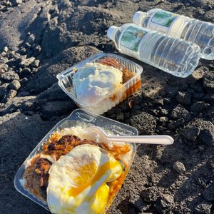 溶岩の上で食べたロコモコ(本家のお店!)も美味しかったです。