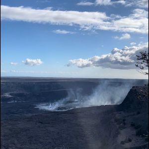 ツアーの宣伝写真にあるようなキラウエア火山の赤い溶岩が見られるのかなー、と思って参加しましたが、夜の暗闇で輝く赤い溶岩は見られません。火山活動が活発だとそもそも国立公園内に入らないとのことでした(これは他のキラウエア火山観光のツアーでも同様だと思います)。火口から噴き出る水蒸気は見ることができます。