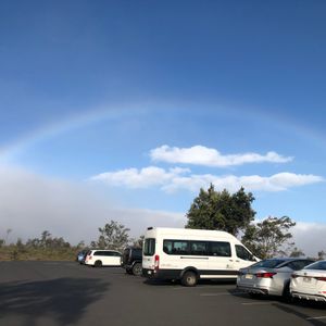 観光スポットの移動時は、雨が降ったり止んだり。スポットでは、運良く雨に濡れませんでした。キラウェア火山の火口では、火柱は見られませんでしたが、火口へ虹がかかって壮大で素敵な景色でした。