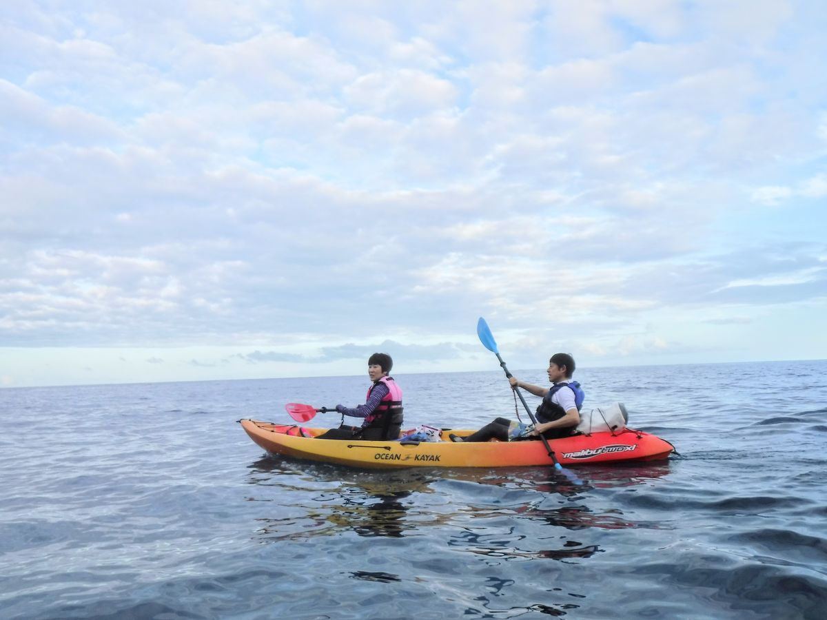 当日は晴れ間の多い曇りっぽいお天気で、海の上でのカヤックにはちょうど良いお天気だったように思います。はじめてのカヤックでしたが乗車の説明など日本語で丁寧に説明していただき、メインガイドの方は外国人の方でしたが、サポートに日本人の方がいらして下さったので安心して楽しむことができました。カヤックは二人乗りのもので後ろに乗る方がリーダーになるので漕ぐ回数が多いのかも?しれません。海の上をすべるようにカヤックが進む感じは風を感じながら気持ちよかったです。シュノーケリングもお魚が泳ぐ姿がかわいかったです。