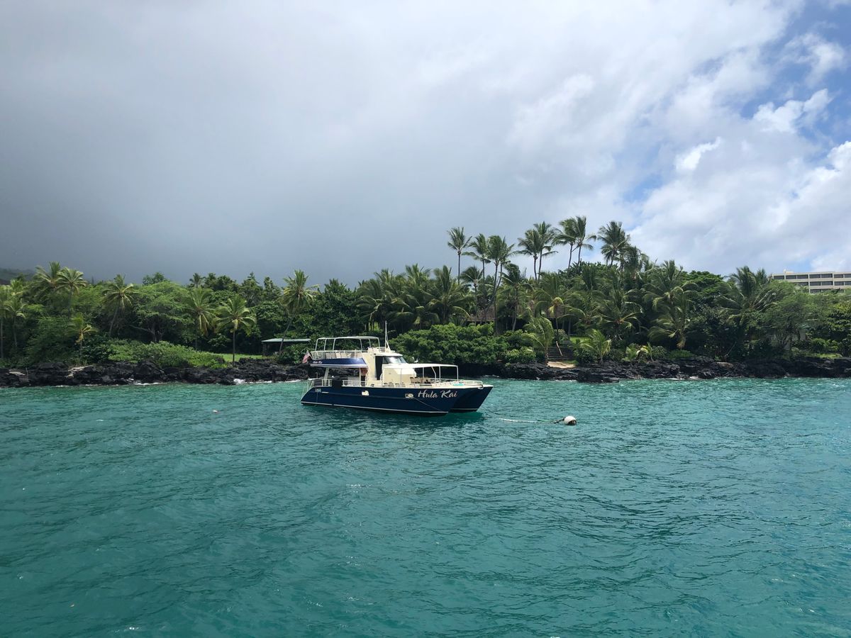 今回は2回目の参加でした。英語しか通じないですが、片言でも丁寧に対応してくれて、安心して参加できます。6歳と8歳の子どもも船の滑り台から滑ったり、飛び込み台からジャンプしたりと大はしゃぎでした。船上で焼いてくれるハンバーガーをはさんでのハンバーガーの昼食も最高です。またハワイ島に行く時は参加します。