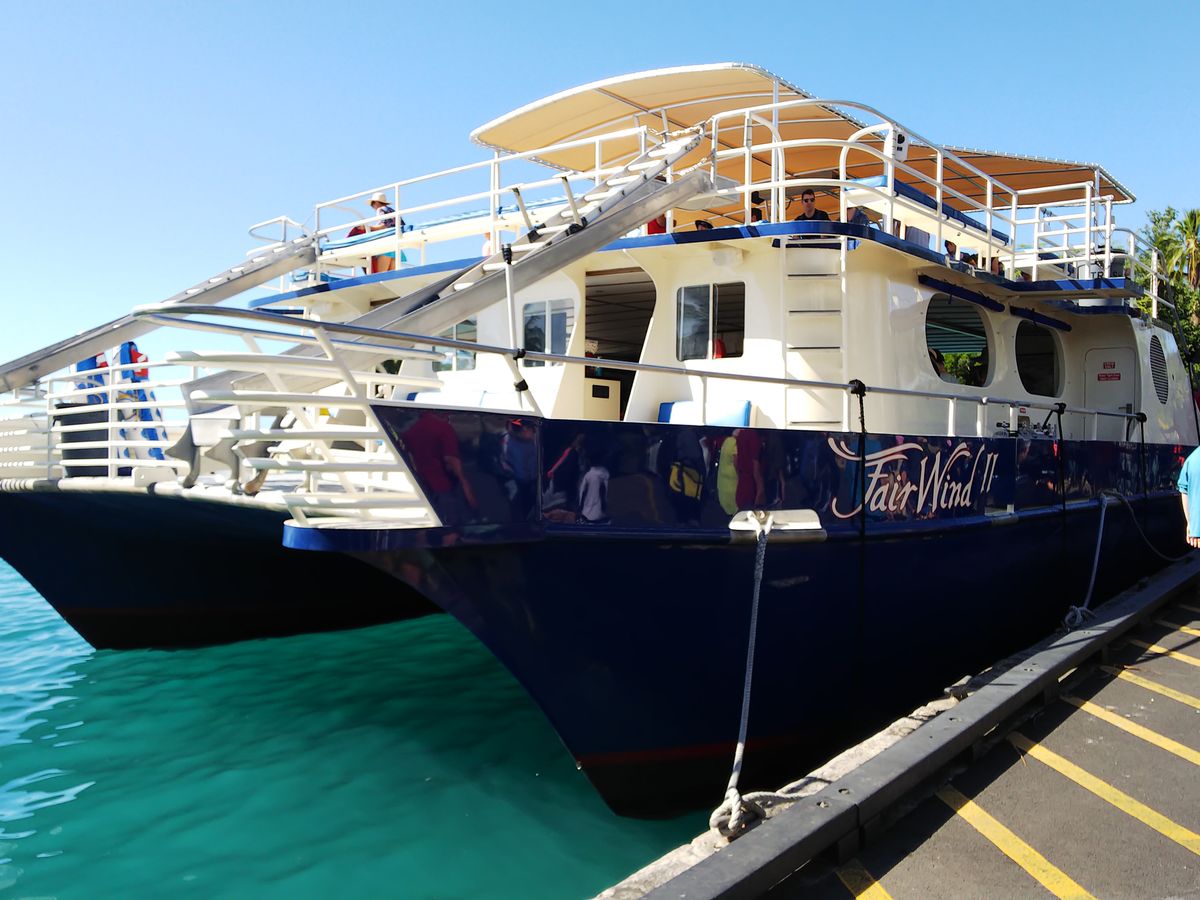 メリット:船が小さいので珊瑚礁の近くに停泊できる。したがってあまり泳がなくても魚エリアに近づける。少人数なのでプライベート感がある。