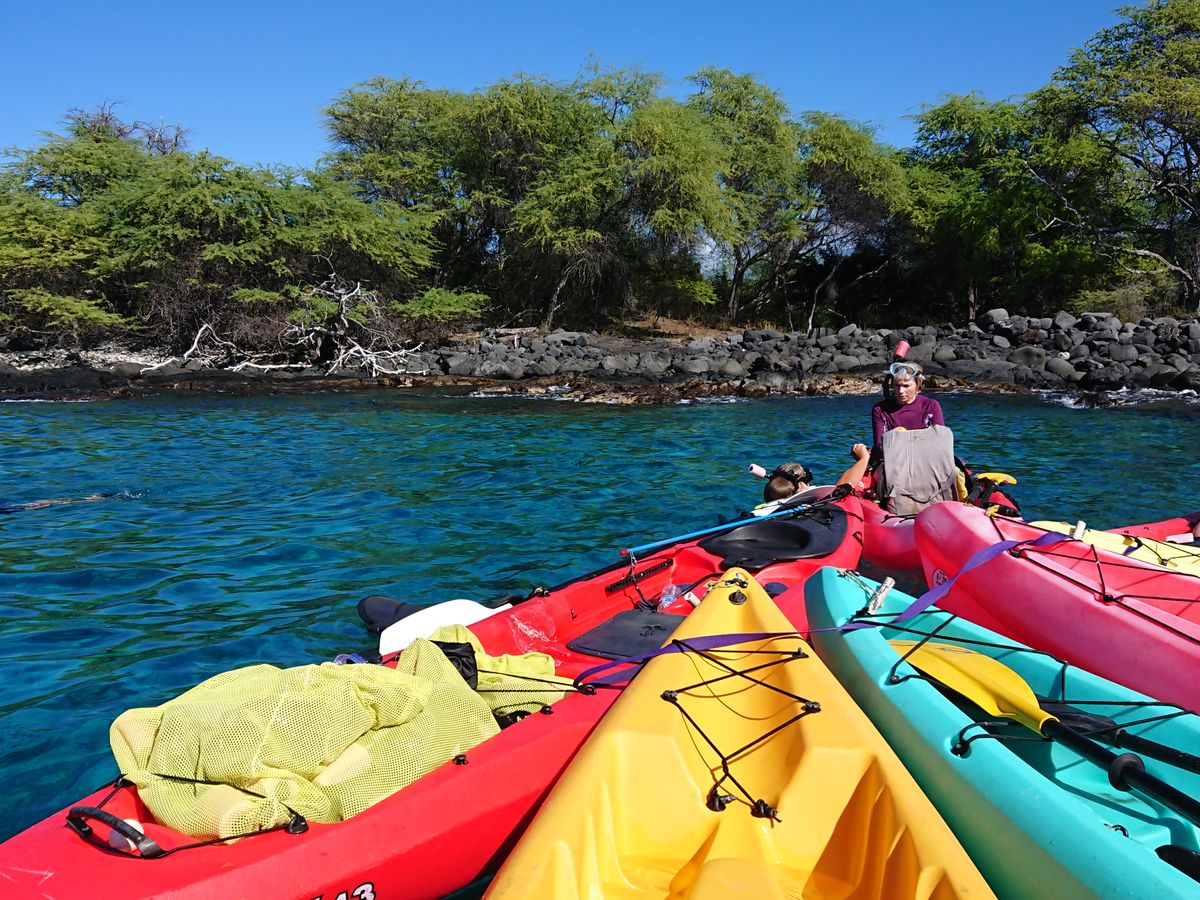 今回はハワイ島でのシュノーケリングも予定していたので、装備も揃えて伺いました。カヤックは、青い海と青い空に包まれるような感覚を、今年は昨年以上に体感できました。ほんとに楽しかったです。