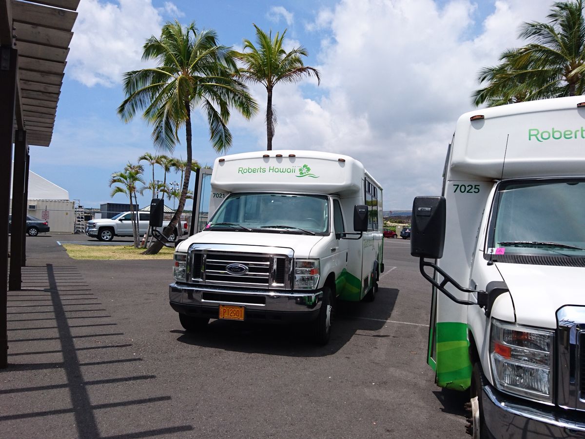 2018/06/06日(ハワイ時間)利用しました。コナ空港を出て直ぐに数社の送迎会社が待っていてくれました。数社と複数なのでロバーツさんはどこかな?と聞いてみたならば、直ぐに教えてくれました。飛行機が日本からの直行便でしたので、お迎えの各社さんも日本語が通じると言うか日本人が対応している状態です。ここはハワイなのか日本なのか迷ってしまうほど日本語で確認出来てしまいます。安心感は120%でした。