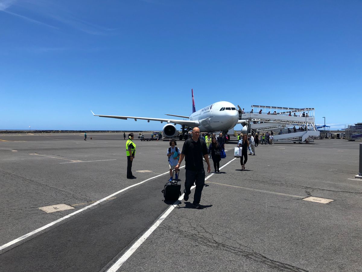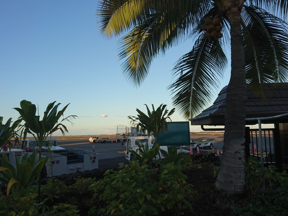 コナの空港はオープンエア。開放的で暑かったですが気持ちよい。