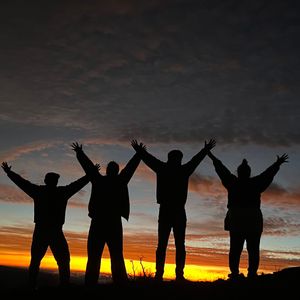 興奮冷めやらぬ中の星空観測も、新月に近い暗さと少ない雲、さらに噴火方向の空が赤く燃える中で記念写真パチリ!