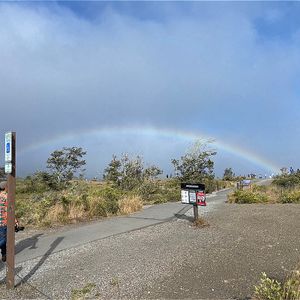 ④ キラウェア火口の見学では雨が降ってきたけど虹も出て