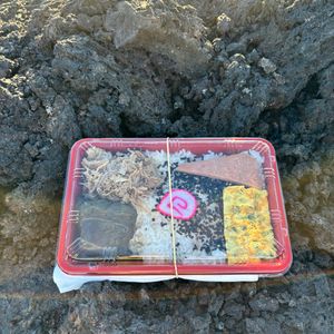 火山でのハワイアン弁当は天候が微妙だったので車中になるかと思っていましたが、晴れ間ができたおかげで溶岩大地でお弁当を頂くことが出来ました。