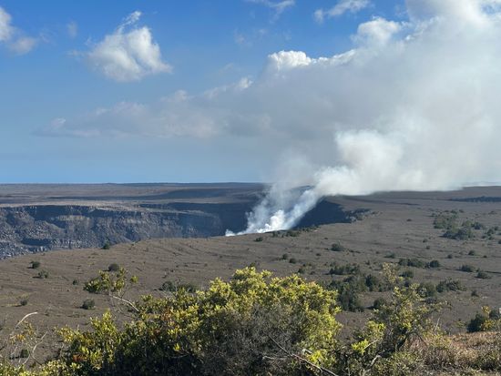 キラウエア火山も活動活発な時期ということで、赤いマグマが見れるかなぁと少し期待しましたが、それは見れずちょっと残念…でも空に昇る白い煙ははっきり見ることができ、大きな火口も壮大な自然を感じることができました!