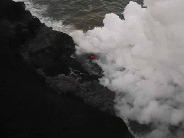 真っ赤な溶岩、海へ流れた後のすさまじい水蒸気、地表で起こっている火事などを見ると、地中ではまだ熱いマグマが流れているのを感じることが出来、身震いを覚えました。