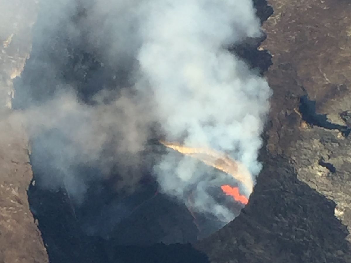 ここ最近マグマ上昇が顕著だったため火口の一部に赤い溶岩がうごめくのが見れました。