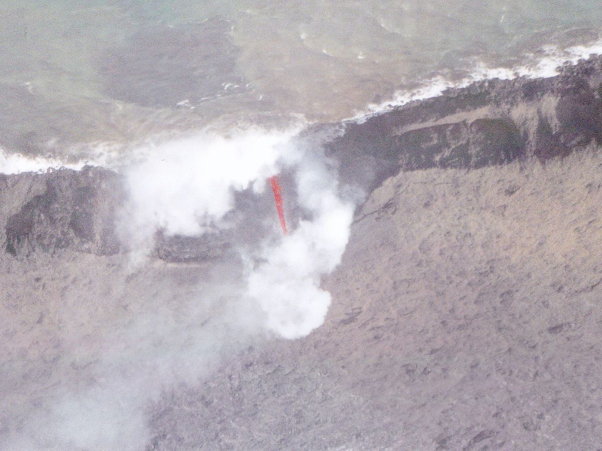 ヘリはそのまま沿岸沿いに飛行し溶岩のオーシャンエントリーを見ました。