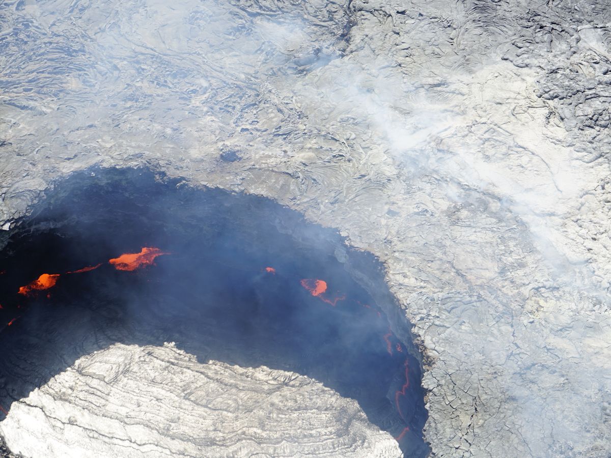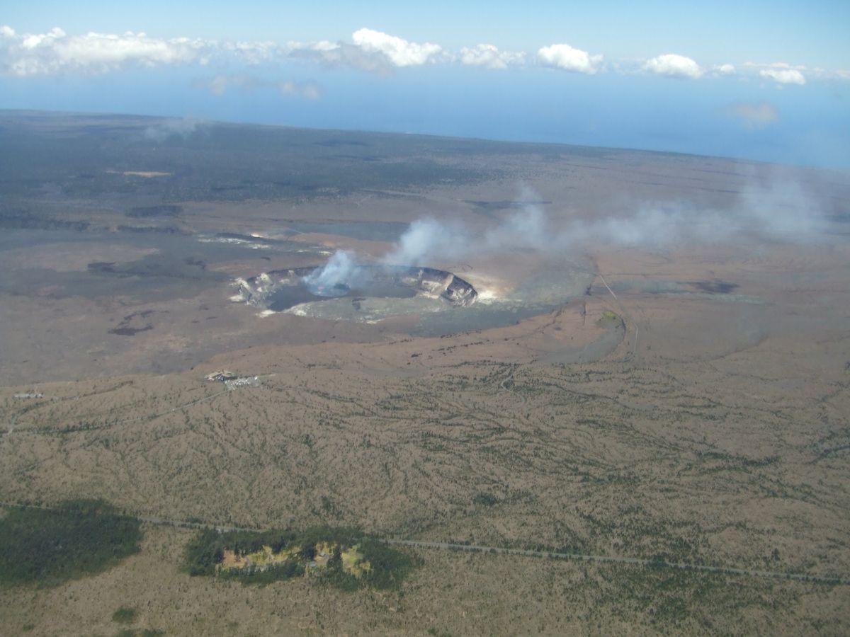 キラウエアは地上からも見ましたが、溶岩の流れるところを空から