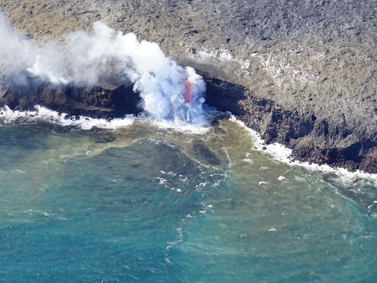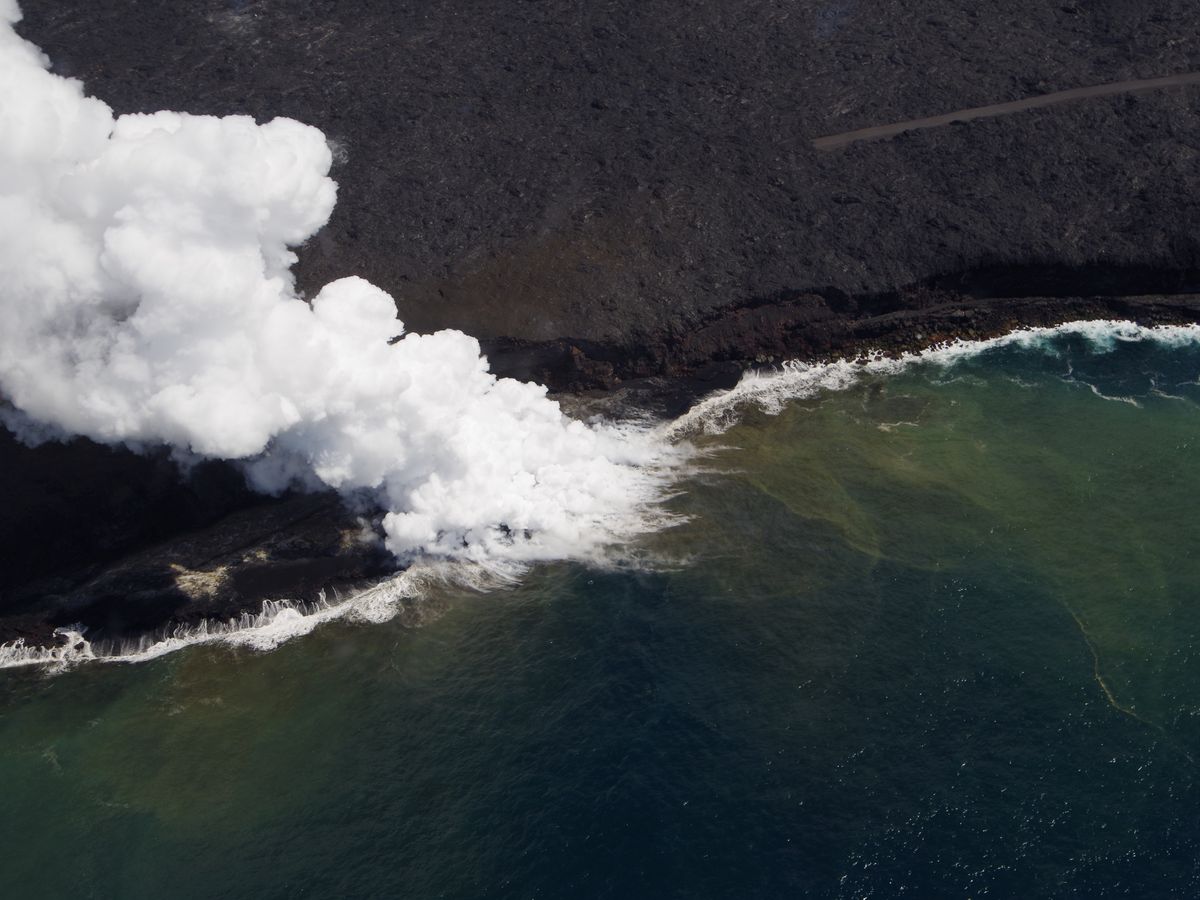これは、火口から流れ出した溶岩が海に流れ込み
