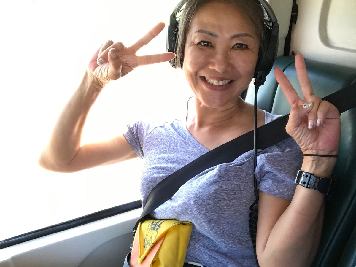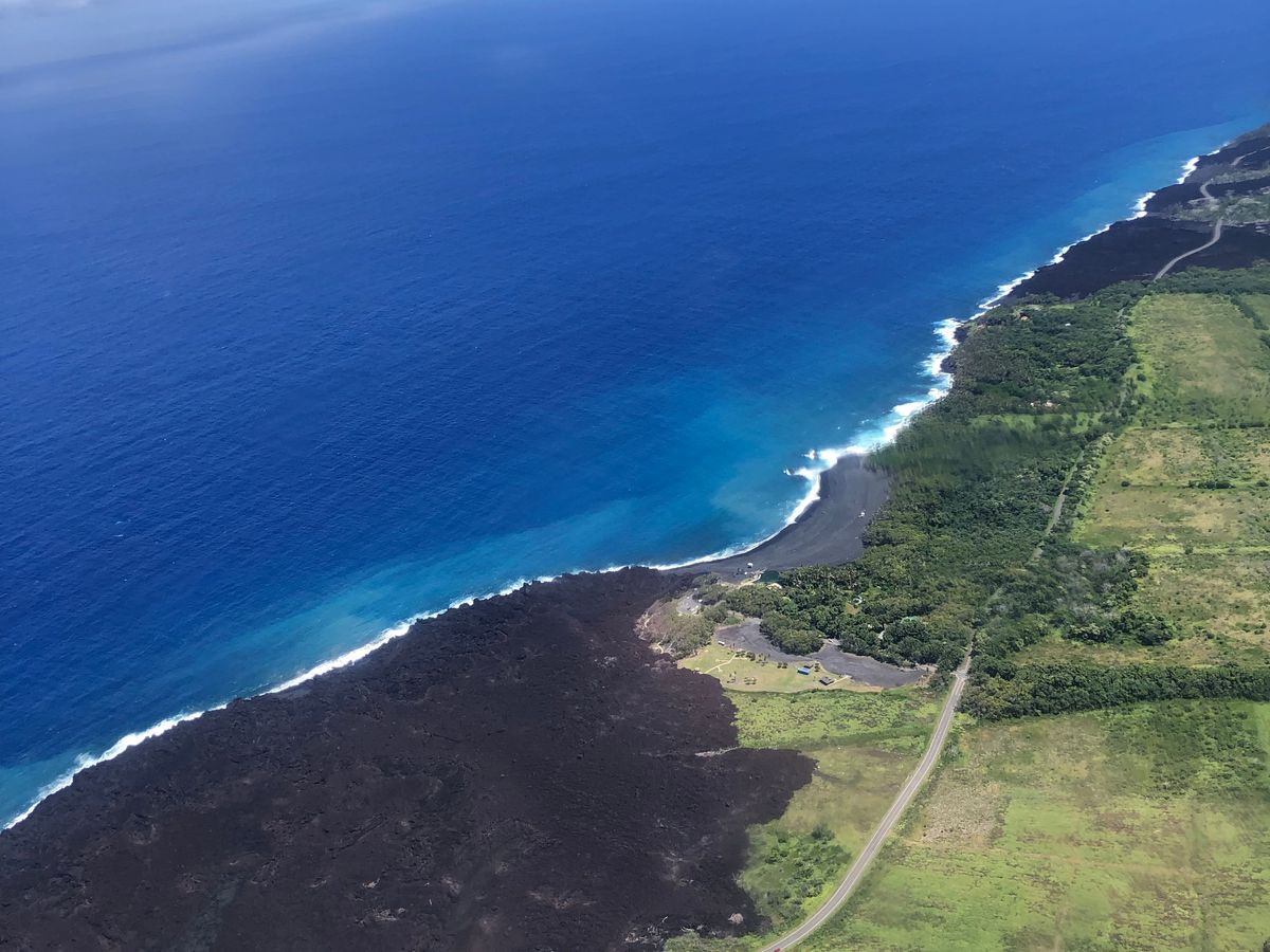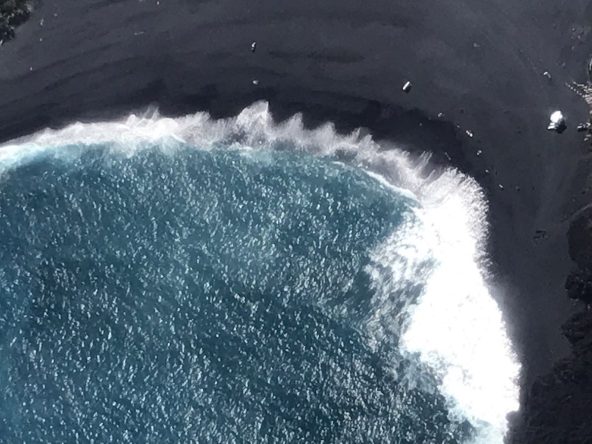 地球の創造者しか知り得ない過去から2019.06.27の今日に至るまでの火山が織り成す壮大な歴史が見えた。キラウエアから生まれた新旧の溶岩流が作り出す重なり合った川、人の営み、道路、畑、すべてを呑み込んで流れた様子、なんという偉力。そして海に流れ込んだ溶岩流がこの島を広げていった様子が一望できる。自然の力の凄さが見える。そしてとったんに出来た黒砂海岸は神さまから人へのジョーク交じりのプレゼントか。次に小原山、時間は溶岩を緑豊かな木々を育む土へと変え、また浸食によって絶景を織り成す渓谷や400mから落ちる滝、これら身震いをしてしまう景色をヘリのゲストは味わった。最後に望月パイロットが語れたこの島の人達の火山との共存意識とその積極性は平凡な日常しか無い私の耳から生涯離れそうもない。それどころかこの人生初のヘリコプター遊覧は地球の営みを鳥の目線で目の当たりに出来た。少し大袈裟かもしれないが人生観を変えた。