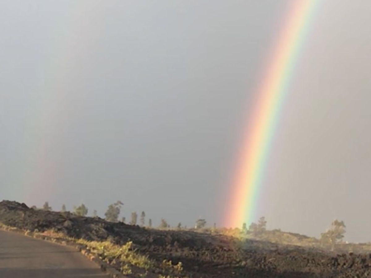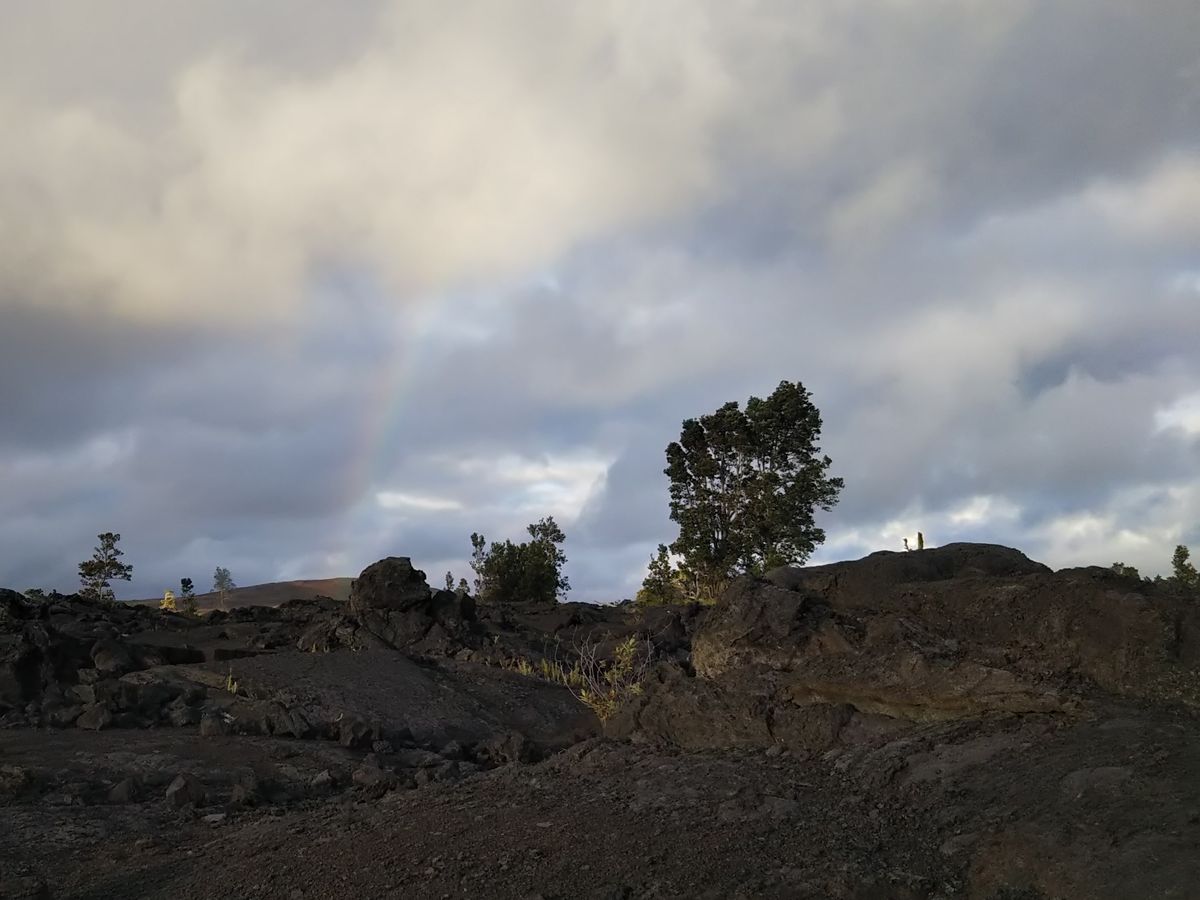 5月に噴火した際の溶岩も落ち着き、運良く虹まで見えました。