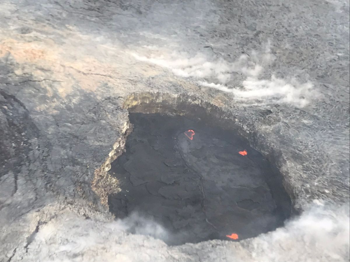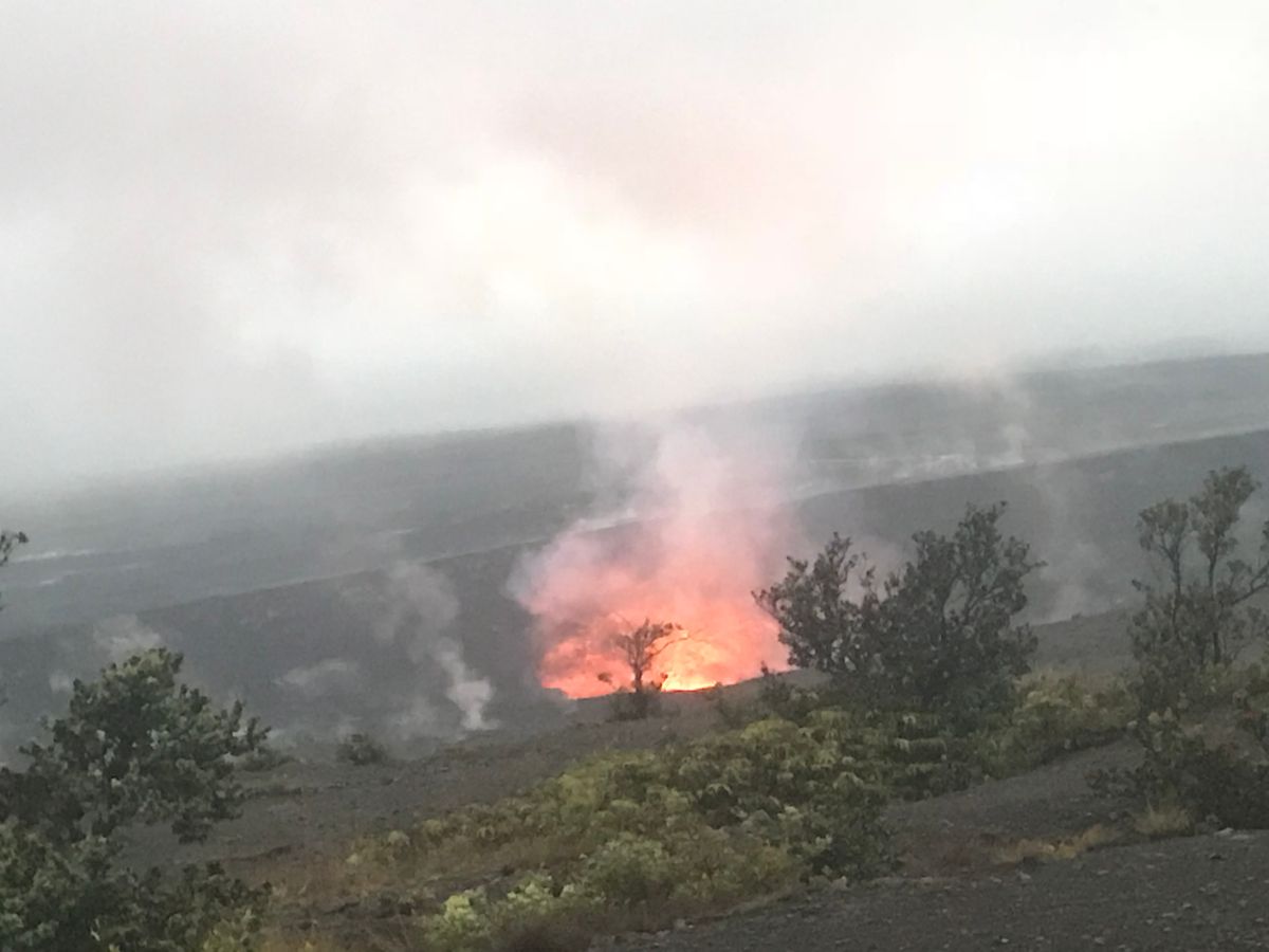 キラウエア火山の火口からは、噴出するマグマが!