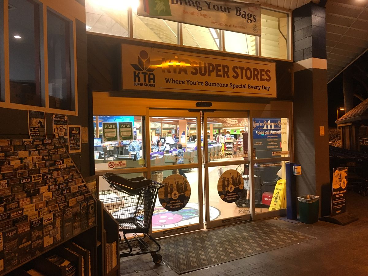 星空観察スポットを3箇所回りましたが生憎雲が多いため全く見えず、代わりにワイコロアヴィレッジのスーパーマーケットKTAに寄りました。