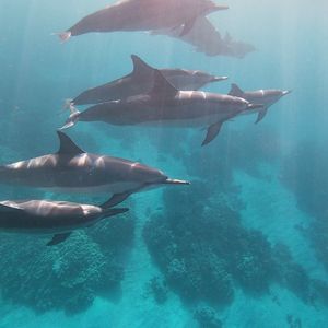 普段は水族館のプールの中でしか見たことのないイルカたちが、のんびりと、楽しそうにこっちに向かって泳いできました。