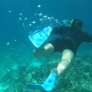 フィンとシュノーケル(必要な人はウエットスーツと浮具)を纏いいざ海へ!