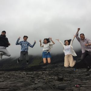 小学2年・5年の子と夫婦の家族4名での参加。元々は赤く染まる火口を見たいと思い予約したツアーでしたが、先の火山活動の活発化で国立公園が閉鎖になってしまったため、代替のプランとなりました。