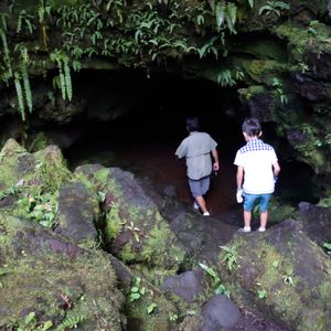 ワイコロアから北部を経由してヒロの方面にドライブ。周りの景色が次々と変わっていく中、どうして同じ島内で景色が全く異なるのかなどハワイの気候や成り立ちの解説、途中の町々では特に日系の移民の方の古い建物を紹介していただき、ハワイ島の日系人の歴史や初期の移民の苦労などの説明もしていただきました。途中ではワイピオ渓谷やアカカの滝などの名所にも立ち寄り、溶岩洞窟や溶岩の噴出で空が赤くなる様子を観察して、ホテルに戻るという内容の濃い1日を過ごせました。子供たちは特に溶岩洞窟内の探検が楽しかったそうで、本当の”真っ暗”を体験させていただいたのも良い経験だったと思います。