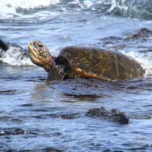 プナルウ黒砂海岸で亀を探していたら、和田さんが真っ先に見つけて望遠鏡で見せてくれたり、スマホを望遠鏡に繋いで(?)ビデオ撮影していただきました。自分でも写真を撮ったのですが、ちょっと遠かったので。