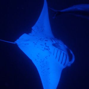 マンタポイントに行く途中で夕日を眺めました。グリーンフラッシュが見えました。マンタポイントでは既に多数の人がいて、こんなに人がいたら、自分たちのところにマンタが来るのだろうかと不安になりましたが、入水した途端にマンタが待ち構えている状態でビックリしました。同一個体かも知れませんが10枚くらい(1匹、2匹という代わりに1枚2枚と勘定するのだそうです)出会えて、満足でした。帰路の船中や上陸後は予想外に暗くて、特に船上で着替えがどこにあるのか暗くて分からず、苦労しました。ライト持参をお勧めします。