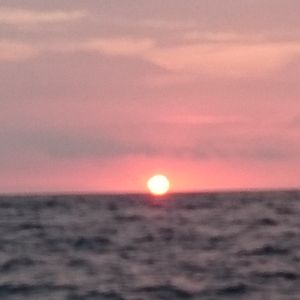 ボートから見た海に沈む夕陽、忘れられない美しさです。