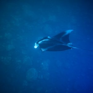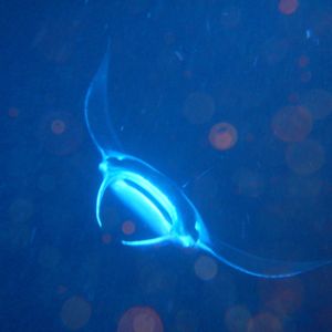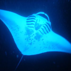 夜の海に浮かび上がってくるような幻想的なマンタ、裏返った時の白く光るお腹がまた美しいです。
