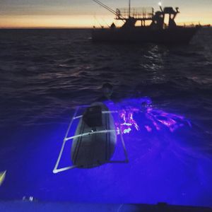私たちもシュノーケルマスクを合わせてすぐに着水。シュノーケルと言ってもウェットスーツの浮力を使い、プランクトンを引き寄せるライトに捕まっているだけでよいので、泳げない人でも極端な話水が苦手な人でも出来るアクティビティだと思います。
